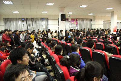 迟宝荣委员用PPT向大家展示了就业难问题现状、产生的原因和解决方法。我国毕业生人数逐年上升,而就业率却不断下降,这受到高校扩招、大量农民工进城务工、下岗工人增加和大量海归人员的涌入等多方原因的影响,而高校专业调整滞后和市场的不适应,择业期望与用人单位的实际矛盾也都是影响因素。迟宝荣和现场同学分享了她解决教育公平问题的解决方案,比如优化人才培养模式,推进高等教育界改革;引导大学生改变就业观,树立科学就业观;建立有效的职业辅导支持系统等。她还强调,面对当前的竞争社会,大家要通过自身的努力提高自己的就业能力。
